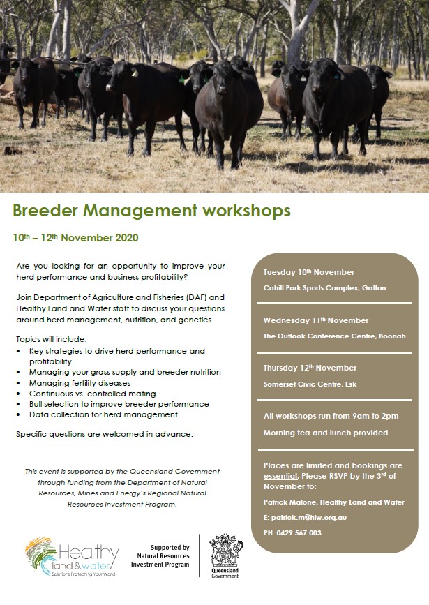 Join Department of Agriculture and Fisheries and Healthy Land and Water staff to discuss your questions around herd management, nutrition, and genetics.