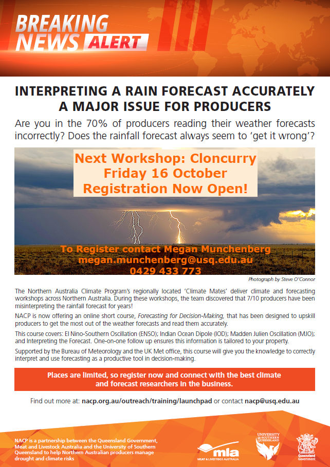 The Northern Australia Climate Program’s (NACP) regionally located ‘Climate Mates’ deliver climate and forecasting workshops across Northern Australia. During these workshops, the team discovered that 7/10 producers have been