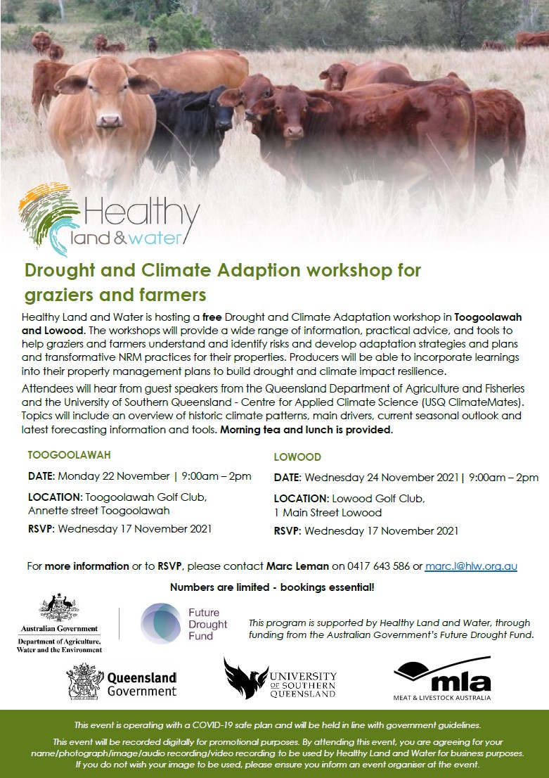Healthy Land & Water invites you to join them for the Drought and Climate Adaptation workshop at Toogoolawah, 22 November.
