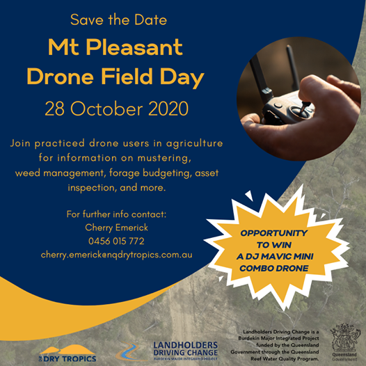 NQ Dry Tropics is holding a drone field day at Mount Pleasant Station (between Bowen and Collinsville) focused on the many practical uses for drones on-farm.