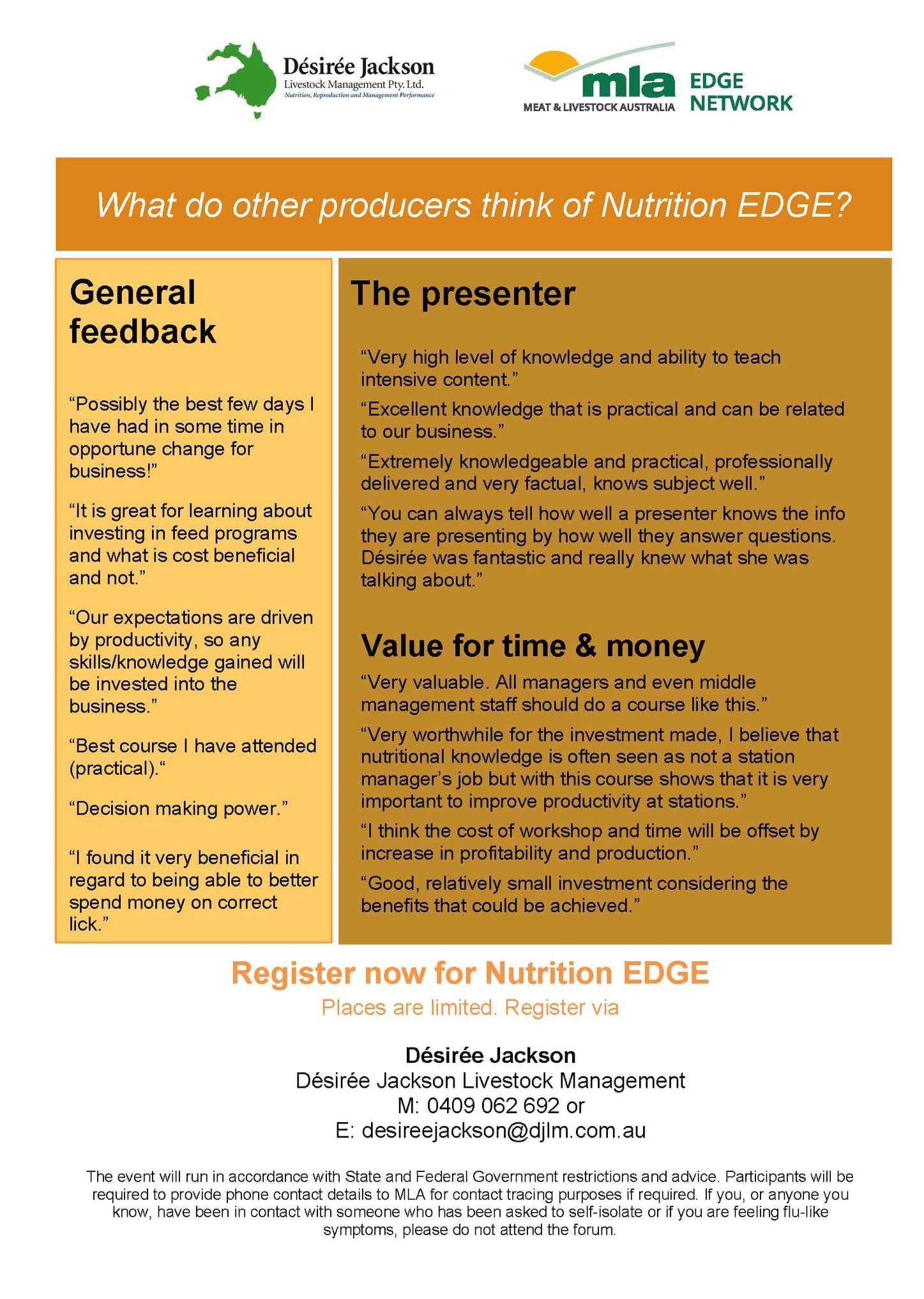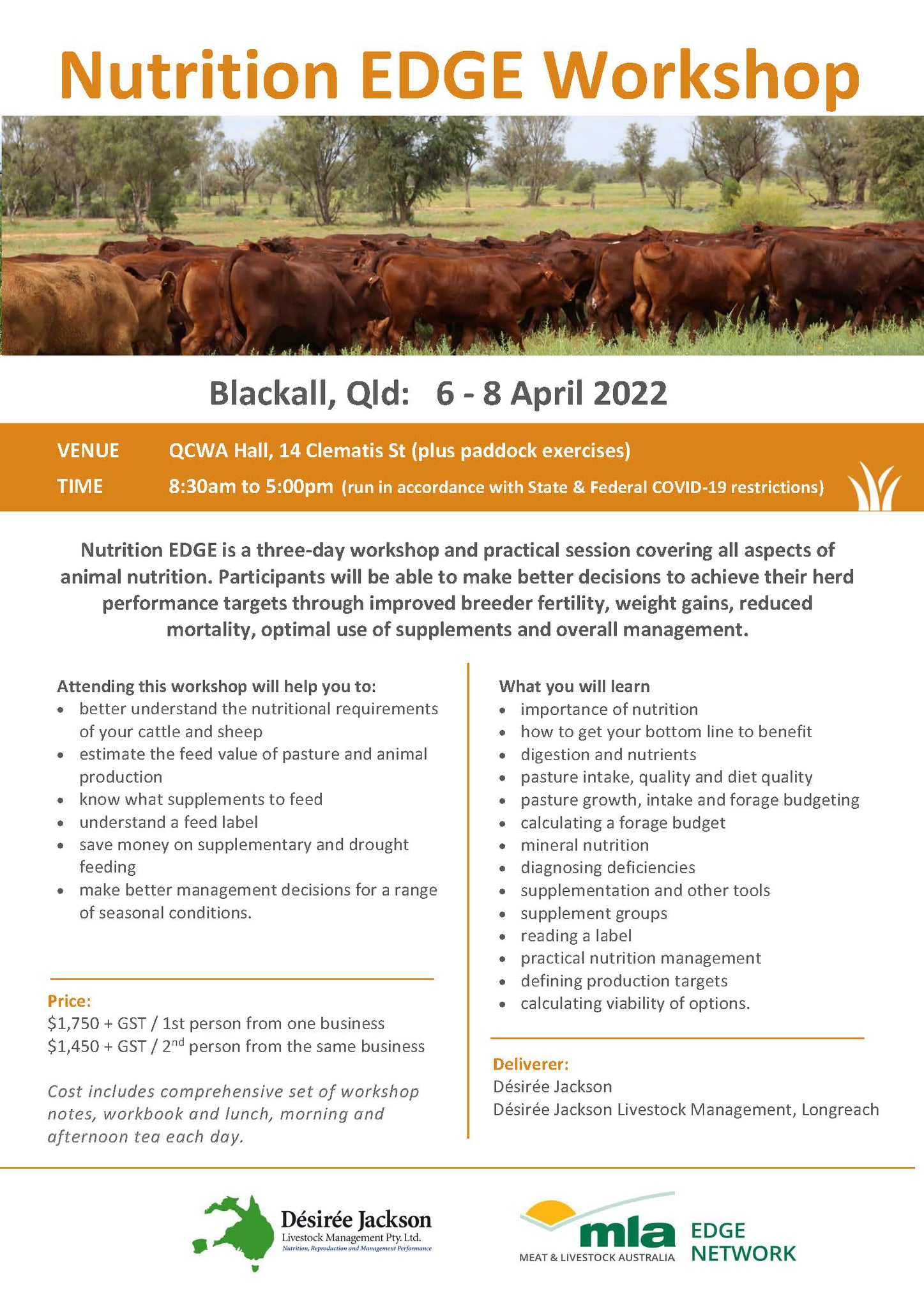 To register for Nutrition EDGE in Blackall, contact Désirée Jackson on 0409 062 692.