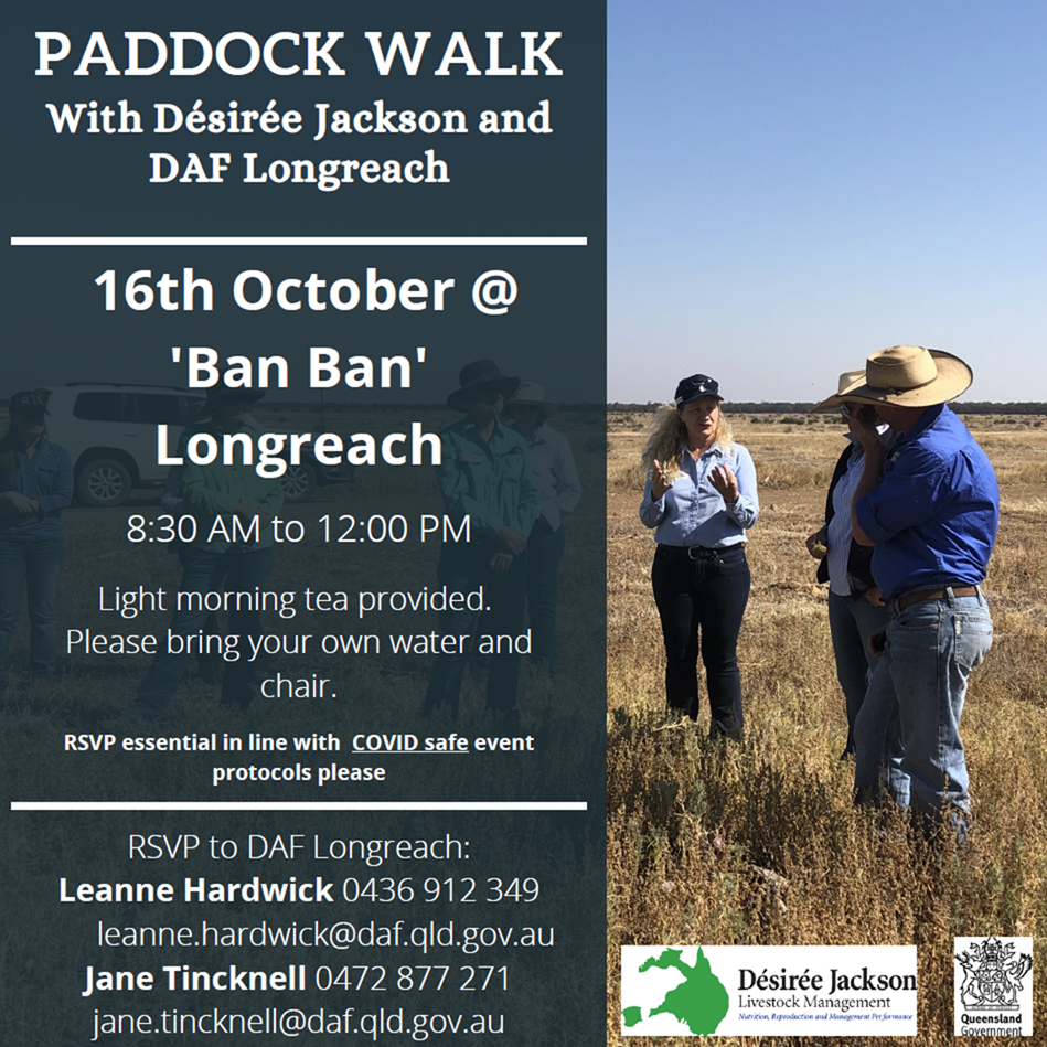 Join Desiree Jackson of Desiree Jackson Livestock Management, and the Grazing Team from Department of Agriculture and Fisheries Longreach, for a Paddock Walk at ‘Ban Ban’, Longreach.