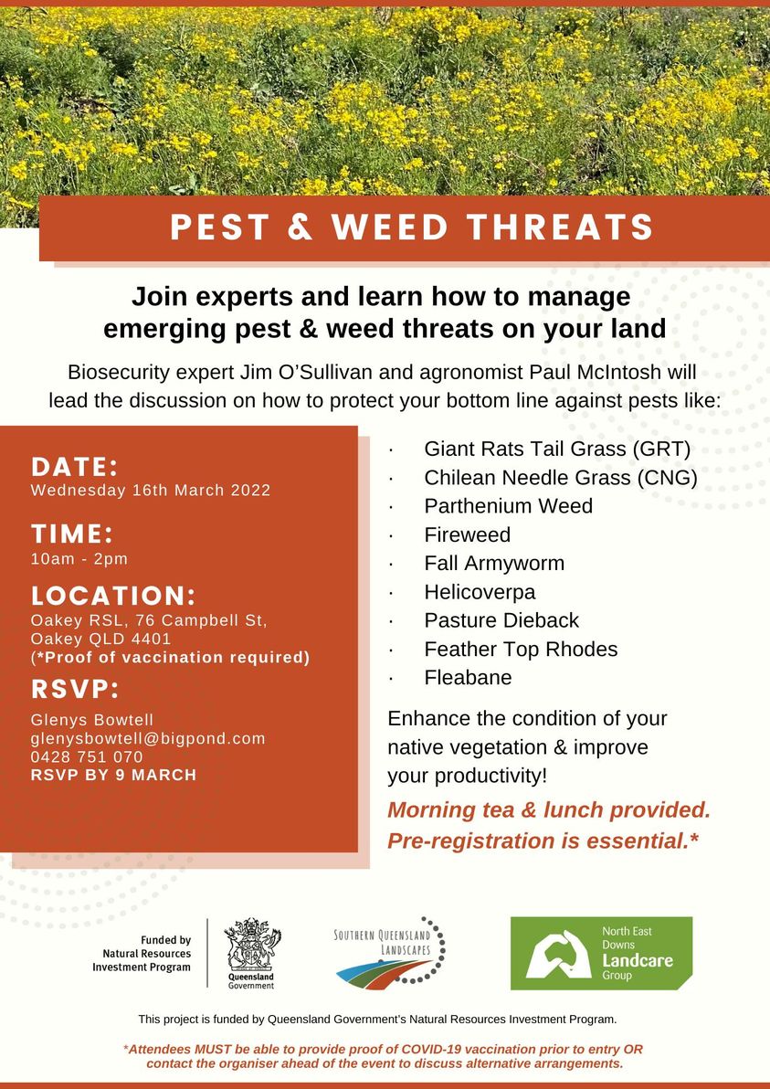 SQ Landscapes invites you to Pest & Weed Threats at Oakey, 16 March.