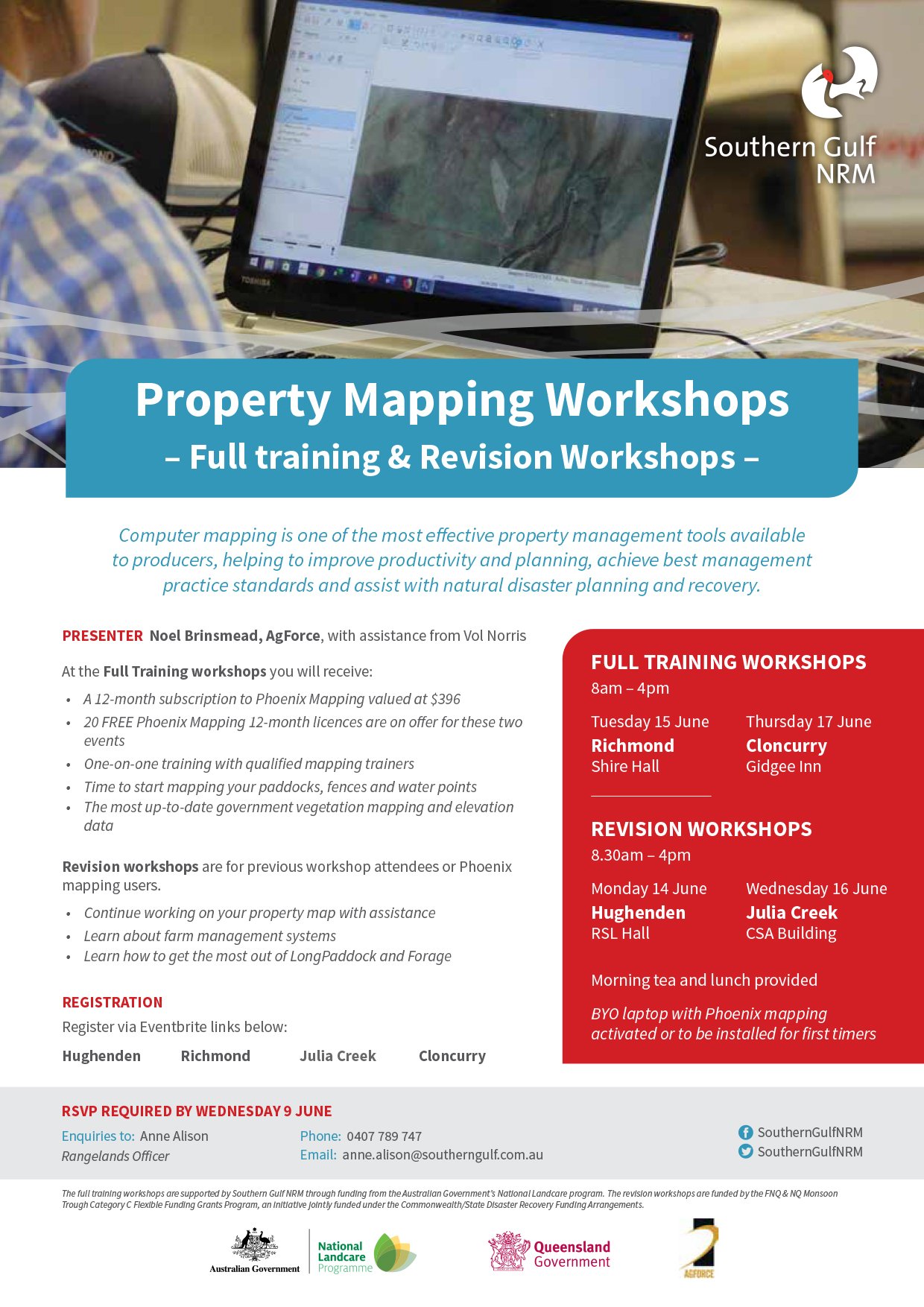 For more information about the Property mapping workshop, contact Anne Allison, Southern Gulf NRM Rangleands Officer, on 0407 789 747.