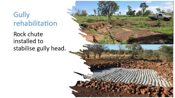 On another property in the Banana area three large gully systems had formed in three separate paddocks. Extreme weather events in recent years exacerbated the rate at which these gully systems had expanded, causing significant soil loss. Consistent efforts have been made to manage the stocking rates of these three paddocks to limit the amount of cattle disturbance/traffic around these gullies.