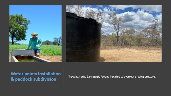 There has been a lot of interest from graziers in installing riparian fencing under the GRASS incentives program. Several property managers have implemented fencing on their properties to prevent further erosion in riparian areas, often caused by cattle drinking from natural water sources. Water points were installed away from the riparian zones before they were fenced off.
