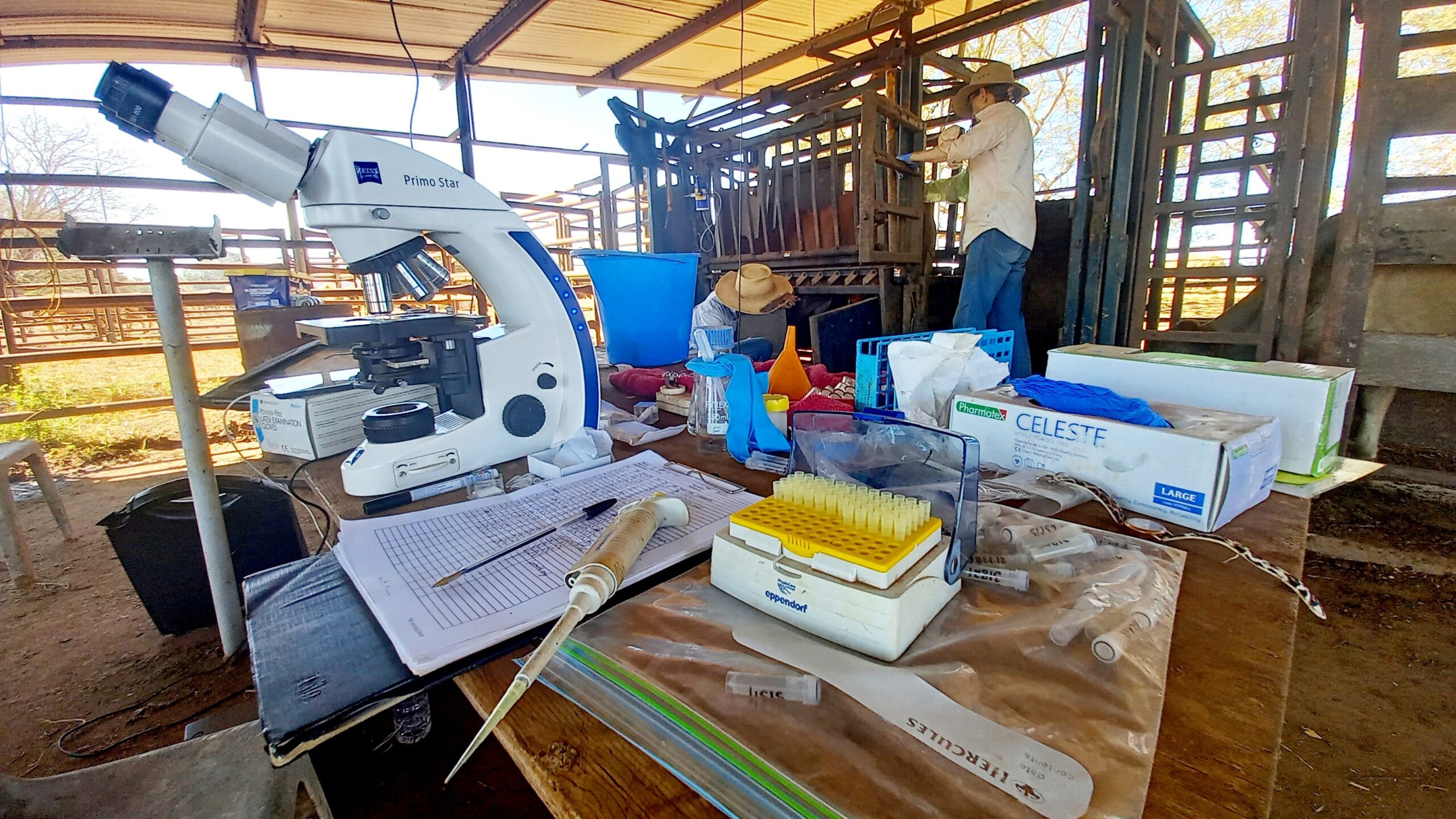 BREEDPLAN 600 day data is collected in early June which is provided and analysed for estimated breeding value (EBV) information. The 18-month-old male Selected Brahmans and Tropical Composites had their weight, hip height and scrotal circumference recorded, as well as a semen sample collected which is analysed crush side for motility, before being sent away for morphology. The results from this testing are used to select the bulls for the department’s breeding program and the cattle for the following year’s annual sale. The 18-month-old females are pregnancy tested following their yearling mating, and their weight and hip height are recorded.